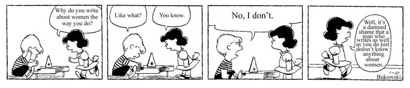 Schroeder played the piano and all of the girls loved him. They would sit there for hours and watch him play. Schroeder had a big old cock, too, and the girls loved that just as well. The times Schroeder wasn’t playing one instrument, he was playing the other. He would play the piano all day and screw all night and he got maybe an hour or two of sleep. He came into the bar one afternoon and took a seat next to Charlie.