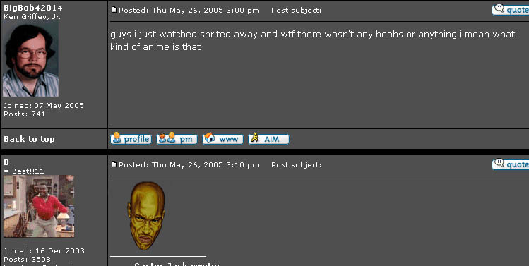 If nothing else, Sticky's disturbing mug makes for a useful forum emoticon. |