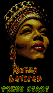 | Daring to wear something other than black is the floating head of Queen Latifah, who is really better at basketball than you'd imagine something without arms being. She actually looks like she could be the boss at the end of a level in Gradius, where she'd float around and occasionally her jaw would slide open like she's about to swallow a mouse and then she'd fire a 50-foot wide laser beam at you and your two dozen missile/laser/shield/wok upgrades. But I digress. Queen Latifah was a rapper and a woman.