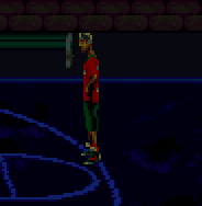 I was always a shover in NBA Jam. I don't know if that's how anyone else played it, and I know that's not how they do it in real basketball, but it just seemed the easiest way to get the ball. This works in Rap Jam too, but I don't know if you can call it shoving. It looks more like a flying elbow to the face, but boy does it work, as I guess you'd imagine an elbow jammed into someone's eye would. It can't be blocked and it can't be stopped, meaning your all your hot b-ball skills give way to just running up to a child and repeatedly punching him in the face until he gives you the ball. The only thing more shameful than knowing you just beat a child to win at basketball is when he does it to you. Sometimes he gets really angry about it too. I'm not kidding. He'll already have the ball, and on occassion he'll still just knock you to the ground. Then you'll start to get up and he'll smack you in the face with the ball. He'll do this several more times. It doesn't help him get to the basket, it doesn't make me tired or something; it serves no purpose. The CPU just got sick of me slapping it around and decided to take the law into its own hands. Perhaps Rap Jam was originally designed as a movie-of-the-week simulator and at the last second they realized they'd better make it a basketball game if they want people to buy it.