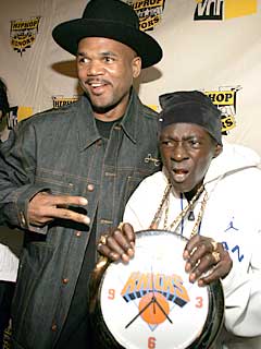 | Here's some hip hop trivia: LL Cool J really stands for Ladies Love the Cool Jerk. Not a lot of people know that. I don't mind a cool jerk myself every once in a while. With a pot on his head like Johnny Appleseed and mouth agape, just waiting for someone to add in a word balloon that says "I LIKE PANTS", LL clearly didn't express in his contract that he had to keep a certain amount of dignity. But he's one of the few who actually manages to not be yellower than Bart Simpson, so I guess it's a give and take thing. |