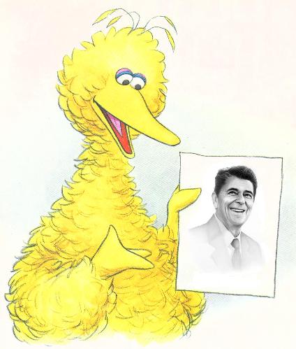 But there was one picture that Big Bird had not yet passed out. "Hey, everybody," he said above the chatter. "Has anyone seen Ronald Reagan? I drew this picture just for him!"