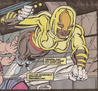 And I know that Liefeld (sadly) isn’t to blame for this, but what the fuck kind of introduction to someone and their power is “Tempo, who can make time fly with her.” So like, she flies, I guess? And something to do with controlling time? Ah the hell with it, we’ll make it up as we go.