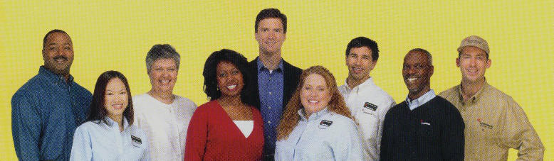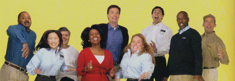 The legacy still lives... In May of 2000, nine RadioShack employees were banded together to be featured in the cover art for RadioShack's brand-new employee guidebook. I don't think any of us realized how it would impact the lives of ourselves and others. We've been rewarded with friendships and memories that will last a lifetime. Said memories will be non-existent after said lifetime ends, since we will be dead. But until then, we've vowed to stay friends and keep in touch always! Hi, my name is Ron. I'm the handsome fellow in the center of the picture above. I put this site together shortly after the 2001 RadioShack Employee Guidebook was printed and distributed to all 7000+ RadioShacks throughout the country. Its purpose is to let all the swell people in that cover art keep in touch and catch up with each others' lives, and give people a look behind the scenes and inside the front cover. By that I don't mean the pages inside the book, I mean it in a more figurative sense. So have fun in our forum! We're all excited that you're here!! |