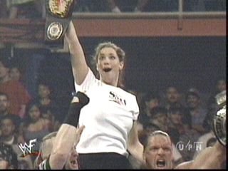 When Stephanie debuted on WWF TV it was to be "abducted" by the "Undertaker," a "gothic" wrestler determined to "own" the WWF and win the "championship," all while wearing "spandex pants" with a big "splotch" of "ass sweat" on the butt. She was delicate and chunky, the incredibly rich girl next door. I liked her so much that I sat through hundreds of Test interviews, something that scarred me for life. I had to drop out of school and go into therapy because of the pure cheese, and now I write fan fiction about Test.