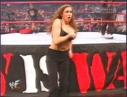 1) The most beautiful thing about Stephanie is that she gives a green light to all the sexual fantasies we secretly have about Vince McMahon. She has his chin. She has his distinctive walk. She has his facial expressions. The only thing she lacks is Vince's assumedly mammoth wang, an object that, when present, strikes desolate fear into the hearts of thousands of sexually confused young boys across the country. In a sport overflowing with homosexual imagery it's good to know you aren't taking any chances.