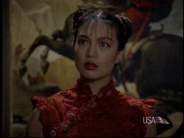 In the movie: Chun Li is undercover as a news reporter, trying to get back at Bison for killing her father (hey, something's the same at least...well, almost). Instead of battling for superiority in the World Warrior tournament (like in the game), Chun Li's movie adventures include dressing up like a Ninja, dressing up like a harem girl, dressing up like a prostitute, and having awkward sexual chemistry with awkward sexual chemist Jean-Claude Van Damme. Chun Li is played by Ming Na, who is famous for being the Asian actress who is in everything else that requires an Asian actress.