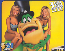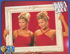 First of all, no respectable people should refer to themselves as the "Dubba Dubba" ANYTHING, especially not on television. But these two chicks (Shelly and Jennifer, I believe their names are) have risen to local stardom as WTTO's WB affiliate advertising wonders. They both (of course) attend the University of Alabama and are VERY talented. In fact, their BIGGEST talent was being born looking like each other.