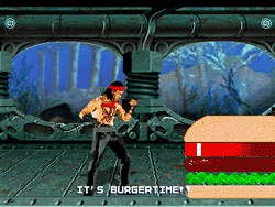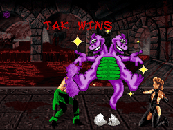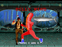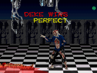 Of course, the whole project was a failure. A team that had no video game experience was set out to create a game in half the time normally given, one that would've been no more than a cheap knock-off in a sea of cheap knock-offs even if it had come out as planned. The development team dragged themselves to the finish line, and then Data East summarily cancelled it. The official reason was that "it did not compare favorably to Killer Instinct," but in fact the true reason was "it did not compare favorably to some shit I scraped off my shoe." The game was more or less forgotten by the three people who had heard of it in the first place, until very recently when someone managed to get a ROM dump and MAME was updated to be compatible with it. Now it's out and about, but there're still quite a few people unaware of its existence. And we can't have that.