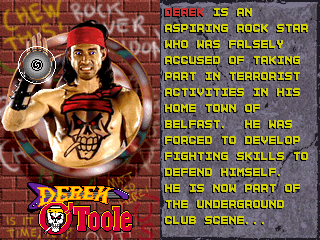 Deke Cay (see what they did there) is the closest thing to having an interesting character the game has. Not real close, mind you, but closer than fucking Billy Two Moons. Deke didn't have any special moves or any other boss-like characteristics; none of them did, actually. They all just looked different. He did, however, point and laugh derisively when you lost, which to this day I don't believe any person in the history of the world has actually done outside of a movie, TV show, or Pistons/Lakers game.