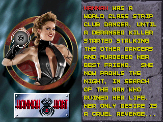 By wearing two strips of garbage bags over her tits and being blonde, Hannah identified herself as the slut of the group. The fighting game slut had little to do with promiscuity and everything to do with being the one female character where the focus was entirely on her being a sexual object. All fighting game females are sexualized to some degree, but there's a big difference between Chun Li and Black Orchid. For the prime example of this character type, see Sophia from Battle Arena Toshinden. And Sophia pulls off the outfit a lot better than Hannah, might I add.