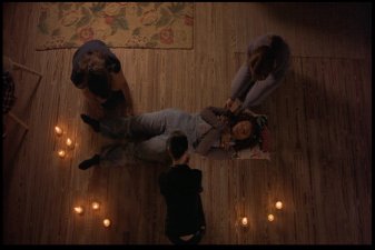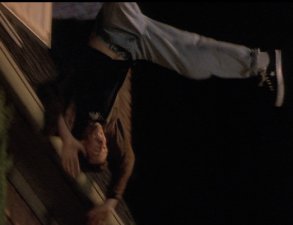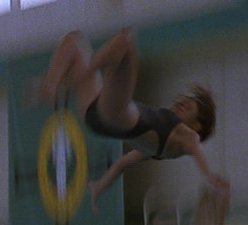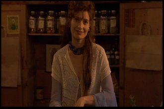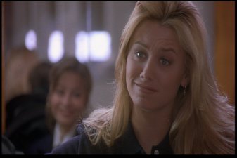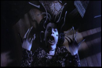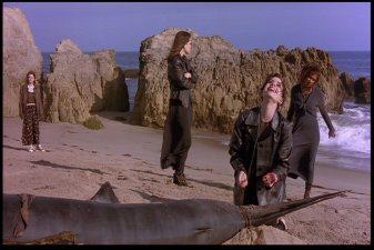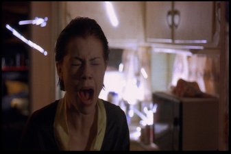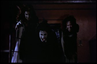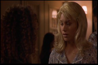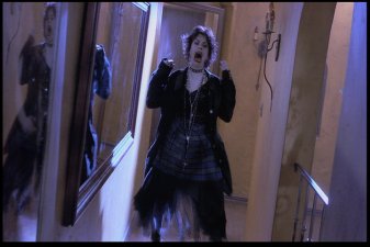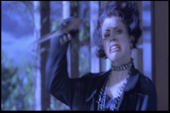 Most memorable scene: Oh, there are so many. Really, I've been asked many a time how I could possibly love a movie as blatantly bad as this one. And though I've never really been able to answer before, I've gotta go with CrazyFairuza as the reason. The other three actresses go through the whole movie looking like they have vitamin deficiencies, but Fairuza seems to know her role. She gives it her all, she does. And though I wouldn't call the result "good" or even "mildly indicitive of talent," it's certainly entertaining. So yeah, a memorable scene. Okay, how 'bout this one? After the Good Witch (Sarah) and the Bad Witch (Nancy) finally square off in the big climactic sequence, Nancy is defeated and all is restored to normal. Sarah goes back to being the quite suicidal girl in the back of the room, and Rochelle and Bonnie go back to being cunts with nothign useful to do with their time. Then it cuts to Nancy, who's been sent to an institution. Fairuza, nothing if not dedicated to her character to the bitter end, leaves us with this enduring image of her performance.