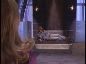 bedroom where a barely clothes Dana (the She Spy) is waiting for him. They