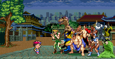 Guile: That's right, Billy, all of your favorite fighting game characters have decided to put aside their differences today for a good cause: stopping you from injecting heroin into your eyeballs.