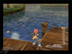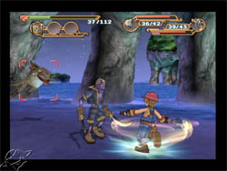 As a matter of fact, keep a copy of the game around just in case you ever meet one of those "industry analyst" pricks who wants to claim that gaming is dying because of a deluge of sequels, so you can smack him with it. The so-called experts like to compare video game sequels to movie sequels, when there's a very important difference: Game sequels, more often than not, actually improve on the original. You're not going to see many movie sequels that fix the mistakes made in the first one (or try to do anything different, for that matter), but game developers will learn what worked and what didn't in their previous titles and make the appropriate changes in the new ones. Dark Cloud had a great concept -- a sort of Zelda meets Soul Blazer in 3D, exploring dungeons one moment and rebuilding towns the next -- but it needed refining. DC2 cut down the number of playable characters, cut down the number of gauges and made loss of weapon HP less devastating (weapons just break until repaired now, instead of breaking and never coming back). They upped the variety in the dungeons, added more story and better graphics, and fleshed out the game with an overflow of extras and sidequests. There's a whole other game worth of stuff to do outside the main quest, be it fishing in the many streams and lakes found in dungeons and towns, playing golf after clearing out a dungeon floor, taking pictures of anything and everything to register ideas in your notebook for use in recipies to invent new items and weapons, or earning special medals for each floor by completing a certain goal, like clearing the floor in under five minutes or without using any healing items.