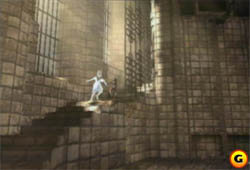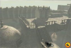 The developers were inspired by the impressionist style of painting while creating the look of the game, and if I knew more about art I would say something more about that. As I don't and don't wish to embarrass myself, I'll just say that light is used to great effect throughout the game, especially when stepping out of the dank, dark castle into the small outdoor areas, where the sunlight temporarily blinds you and the whole scene is overexposed, just as when going outside after a long time indoors in real life. Light is everywhere, in fact; it washes over outdoor scenes, it streams through windows, and even Yorda, the young girl Ico helps to escape the castle, radiates with an ethereal glow. Screenshots don't do the game justice; you really need to see in front of you and move around freely in it to appreciate it. There are times when you can stop and be almost certain an area is pre-rendered, but in fact everything is being done in real time.