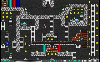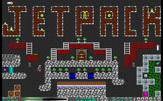 Essentially Lode Runner with a jetpack, the game involves collecting all the green gems in a level and then finding your way to the exit. To be honest, I never played the premade levels all that much. There were only 10 with the shareware demo, anyway, and I've never bothered to sit down with the full version. That was never the real draw, anyway. What made Jetpack so special was its level editor.