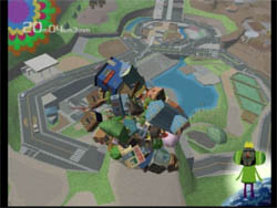 Katamari drew a lot of comparisons to Jumping Flash! when it came out, and for good reason. They're both quirky, niche Japanese titles, but they also both eschew excessive challenge for simple, fun gameplay. The King of the Cosmos accidentally knocked the stars out of the sky, and thus the Prince must collect material to make new stars (like I said, quirky). Thus the only goal is to roll a sticky ball around the world, collecting the items that stick to it, gradually growing your ball as more (and larger) stuff sticks to it until it reaches the proper size. You can start out the size of a mouse, collecting thumbtacks and batteries and eventually grow until you're picking up fence posts and people and cars and buildings...