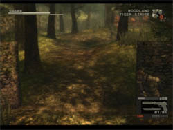 In gameplay, the additions of camo and the loss of radar added significantly to my enjoyment, despite my dreading the loss of the latter prior to playing. It turned out that not having radar put me more into the game, where in MGS and MGS2 most of my play was like a minigame in this little box where it just happened to be acted out on the rest of the screen. I wasn't paying attention to Snake, or my surroundings, I was just watching this box and moving my little dot to avoid the yellow triangles. Without that, I had to actually watch what was going on, and keep tabs on the guards myself. Luckily the use of camo allowed you to get in close enough to see what was going on without being spotted right off the bat.