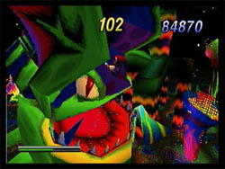 NiGHTS (that's how the logo is spelled; who knows if that's how they actually intended people to type it, but I'm going with it) is a gorgeous game. It has a style that is not only unique and stands on its own, but enhances and melds with the theme of the game. If an androgynous purple harlequin flying through a myriad of landscapes filled with bouncing opera singers and psychedelic winged fish creatures doesn't say "dreamworld," I don't know what does.