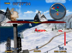 I suppose it's appropriate that these two are together, because they're both about the enjoyment of free flight -- not flying to go shoot something, or do stunts, but just doing it to glide through the air and watch the world pass beneath you. Pilotwings 64 was a better realization of what the original Pilotwings wanted to be; I loved the original, but there's only so much you can do with Mode 7. Whether you were sky diving or hang gliding or rocketpacking, you were still doing it in a big empty room with a picture of a runway and some grass on the floor. Here they could finally have a real world with little details to fly around and examine, though technical limitations still crept in and kept the levels from being very big. The fun of flying a plane is lessened somewhat when the whole island you're on passes under you in a couple of seconds.