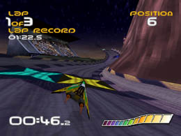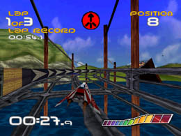 Unlike Nemo, however, there actually was a very good game underneath the wrapping. It was fast, it had a weapon system that added a new layer of strategy to the gameplay, and the physics of an anti-gravity vehicle made for a completely different experience than anything that had come before. Floating cars in previous games like F-Zero were little more than a gimmick (they basically drove like normal cars on ice), but here you had to adjust to a totally different style of driving. No tires are going to help you skid into that turn; you have to learn to sling your weight around it. You aren't going to crash into that bank, you're going to slide up it sideways like Marty in the tunnel with Biff in Back to the Future II. Inertia is always a factor in driving, but with nothing holding you to the track it became the most important factor. It was sort of half way between trying to fly a plane and drive a car, and thankfully that happened to be a pretty fun way to race.
