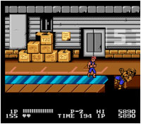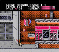 Even the plot of the NES version was deeper than that of the arcade. Not only has your girlfriend been nabbed by a gang of "Shadow Warriors," but the gang is led by your twin brother gone bad! It would've been a nicer surprise if the instruction manual didn't spoil the end of the game for me, though I'm glad that it taught me not to bother reading it if you want to enjoy the game the way it was meant to be enjoyed, by just turning it on & getting lost in it.