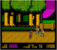 Double Dragon enjoyed a mild popularity in arcades, but it wasn't until Technos brought it to the NES that I truly learned to appreciate it. I always felt that the arcade game, while a bit nicer looking, had rather terrible controls. The Nintendo port still great looking, especially for its time, & the background music was louder, faster, & more aggressive than the arcades faint keyboard tunes. Most importantly, the NES version's controls were simplified a great deal, making it a lot more playable. Only now, a player had to build up points in order to gain new fighting skills. I love Nintendo logic. Only after you kick a group of thugs in the stomach enough times will you magically learn to jump & kick at the same time, or grab bad guys by their hair & fling them over your shoulder like a bag of crumpled office paper wads.