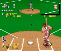 The game, itself, was a brilliant experience. The background music featured a mix of ballpark organs & lead guitars. The umpire's voice was recorded from that of an actual Major League Baseball ump. The players had colorful animations, especially when they struck out... even if it was clearly a strike THAT THEY SWUNG AT, some of they would still yell "AWW COME OOOOOON!" or break their bats in twine.