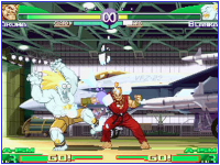 The Alpha games, which falls in between Street Fighters 1 & 2 in the timeline, brought a much stronger sense of plot to the series, & this third installment boasts Capcom's best use of the story mode to date. Each of 32 characters (33 if you count "Evil Ryu") are out to find something, be it fortune, justice, or a higher sense of self. You fight a schedule of ten opponents, your fifth & ninth battles being against a sort of "miniboss," who is either a foe or an ally inviting you to a challenge. Then you're up against a powered-up M. Bison (or Ryu if you've chosen to play as the Bison, himself), whose psycho crusher move drains your power down to about 20%. He's a cheap bastard, but the ending sequences in this game are worth it quite a bit more than they were in past fighting games. A few are still rather shallow, but for the most part, & especially in cases like Cammy, Charlie & Cody, you really get what you play for.