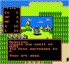 The story was simpler than most RPGs today. You play the poor descendent of a famed dragon slayer, called upon the King of Alefgard to save his daughter & the powerful Ball of Light from the mighty Dragonlord. You were only one guy, equipped with nothing but some stuff you could gank from the king's throne room, & then you spent the rest of the game beating up monsters, stealing their money, & using it to buy new stuff. This went on until you were powerful enough to make it to the Dragonlord's castle, find your ancestor's magic sword within, & stab the guy until he turns into a dragon & eventually to death.
