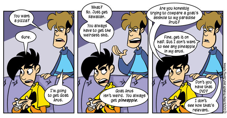 Penny Arcade is notable for being the only webcomic whose art is comprised of discarded storyboards for Kim Possible. The main problem I have with it is that it gets its purported humor and, in turn, its audience, from a “can they say that?!” kind of faux-shockingness, but if the only people reading your strip are jaded dweebs whose favorite prank entails tricking others into looking at a photo of a gaping, distended rectum, no one’s being shocked. It’s totally boring.