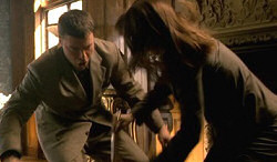 away from the coin he let fall onto his lap by motioning with his hands as if
