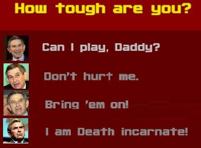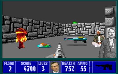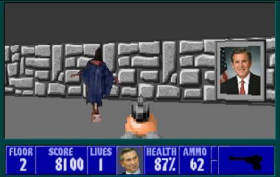 To say the least, this game has really made some breakthroughs. Wolfowitz 2D was met with criticism as players disliked battling Saddam Hussein's cousin Wart as the final boss, as well as having to sully America's reputation by pulling roots out of the ground and throwing them at the prisoners. 3D's improvement is even more evident when compared to Wolfowitz 1D, shown here: