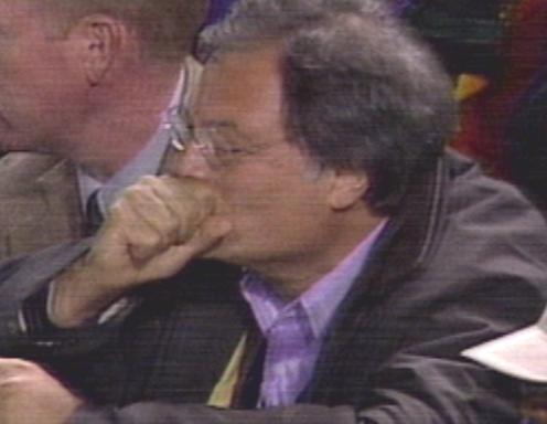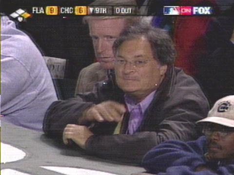 Watching the game from home, I was very surprised to see that Steven Bartman had the cajones to show up for Game 7. Steven Bartman, fascinatingly, seemed to hold the same facial expression that he held in Game 6, when he looked like he was trying to imagine himself far, far away.