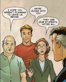 They are the students' teachers, and in true teacher fashion do not even wait one second to butt into the business, explain how important it is that they are teachers, and start making decisions for everybody. And thank God, because once you've gone through a Kree/Skrull war or lifted a crashed train off of your shoulders you need some middle-aged white folk who stayed in school with an indeterminate major slightly longer than you to make the important calls.