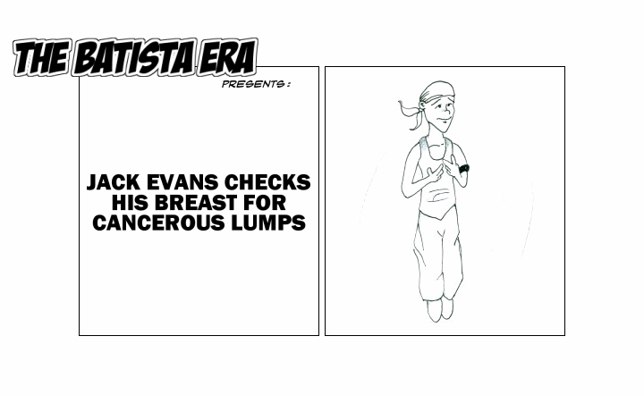checks his breast for cancerous lumps