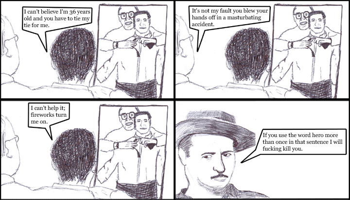 The comics are taking a week off this week, so I thought I'd bump this with one from the archives, specifically the one that appears at #1 on B's Top 5 list. It's one of my favorites too, probably in my top 3.