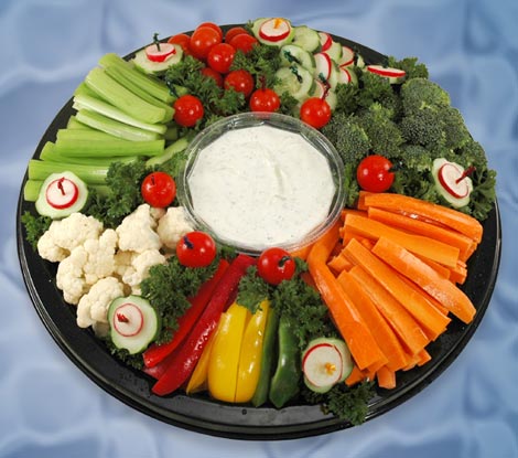 Bullshit vegetables that, I might add, you overpaid for. See, that tray cost you like seven bucks, which in vegetable money equals approximately one fuckton pounds of broccoli, carrots and celery. But because you needed a bigass plastic saucer to place them on, you get eight carrot slices, twelve tiny pieces of broccoli and four thousand pieces of celery that nobody is going to touch.