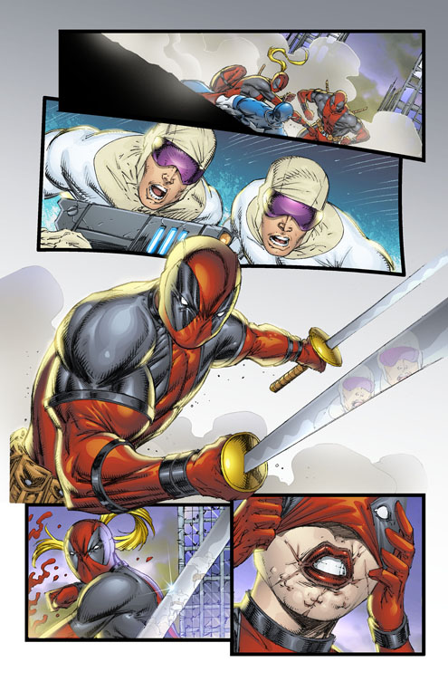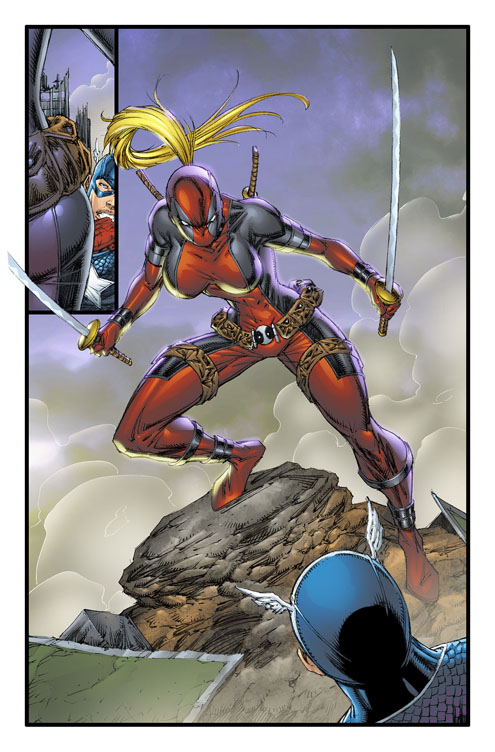 I read all of Deadpool Corps, which thankfully switched artists around issue 9 or so (unfortunately they cancelled it after issue 12). What annoyed me about Liefeld’s depiction of them (besides the egg shaped sans-nose faces that all the Deadpool characters sported) was Lady Deadpool’s ponytail. It didn’t matter if she was indoors standing completely still, her ponytail was always flowing through the air like she was standing in a wind tunnel. Motherfucker never gave in to gravity.