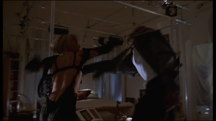 Finally, they land in bed together and she succumbs to his ... whatever. Then she hits a button and her bed turns into the Zion rave in Matrix Reloaded and then, to my immense and everlasting horror, we are subjected to a DENNIS RODMAN SEX SCENE.