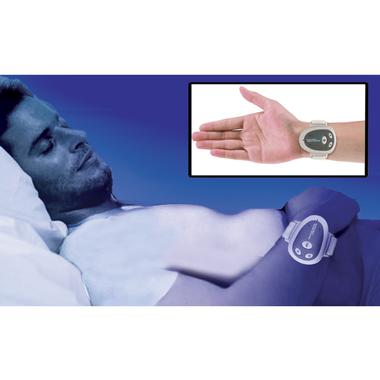 "Wear it on your wrist when going to sleep and the tiny microphone detects snoring and sends safe electronic pulses to the wrist.